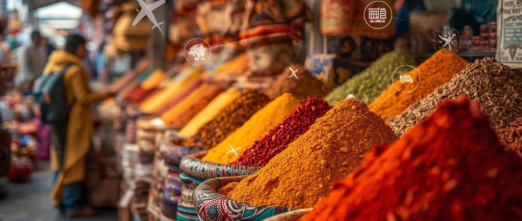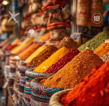 Spice travel destinations, best spice markets, culinary travel, spice routes history, book flights and hotels, buy authentic spices online.